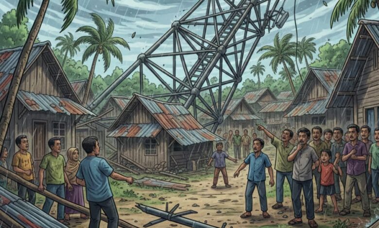 Tower Telekomunikasi Roboh Diterjang Angin Kencang, Satu Orang Meninggal Dunia di Pasirkuda Cianjur