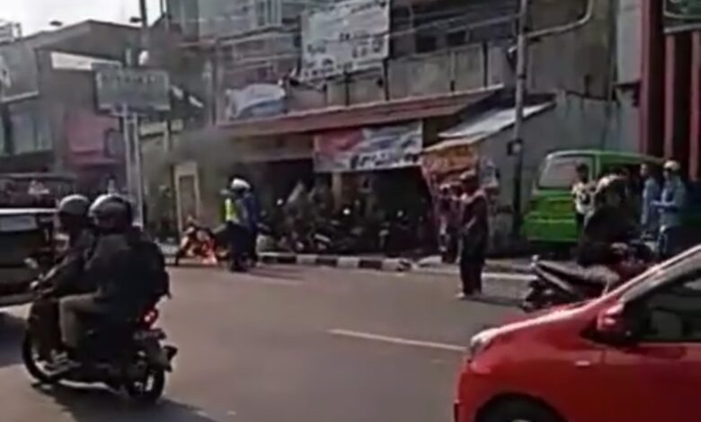 Dalam video tersebut terlihat sepeda motor terbakar. Di sekitarnya terlihat aparat Polisi Lalu Lintas dan sejumlah warga yang berkerumun.