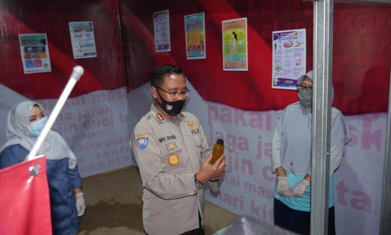 CIANJURUPDATE.COM, Sukaluyu – Wadir Binmas Polda Jabar, AKBP M Rois, melaksanakan kunjungan ke Kampung Tohaga Lodaya, Desa Tanjungsari, Kecamatan Sukaluyu, Kabupaten Cianjur, Jumat (3/7/2020) malam. Sebelum masuk, pengunjung wajib menggunakan masker. Selain itu tersedia sejumlah tempat cuci tangan dan thermo gun untuk mengukur suhu.
