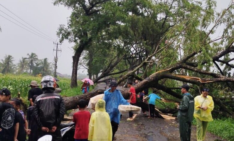 Ia menambahkan, petugas dari pemerintah kecamatan bersama warga dan relawan bahu-membahu membersihkan batang pohon yang melintang di jalan agar arus lalu lintas kembali normal.