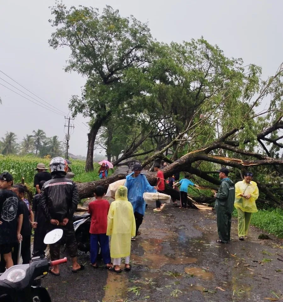 Ia menambahkan, petugas dari pemerintah kecamatan bersama warga dan relawan bahu-membahu membersihkan batang pohon yang melintang di jalan agar arus lalu lintas kembali normal.
